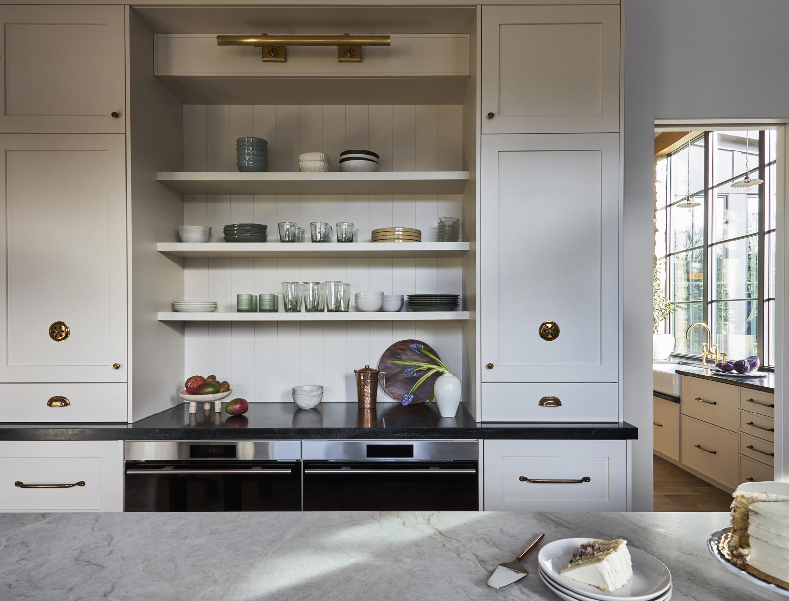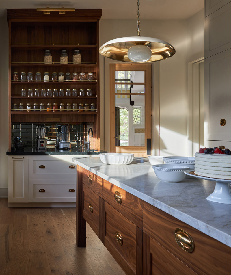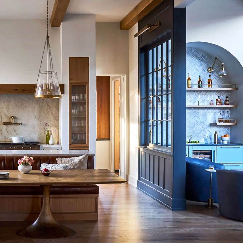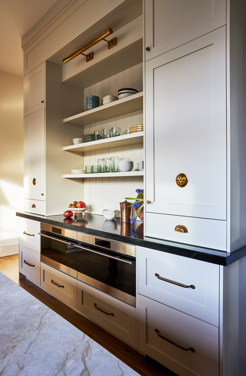 - Taking select cabinetry to the ceiling to create visual continuity while limiting unreachable storage to areas where it made sense
