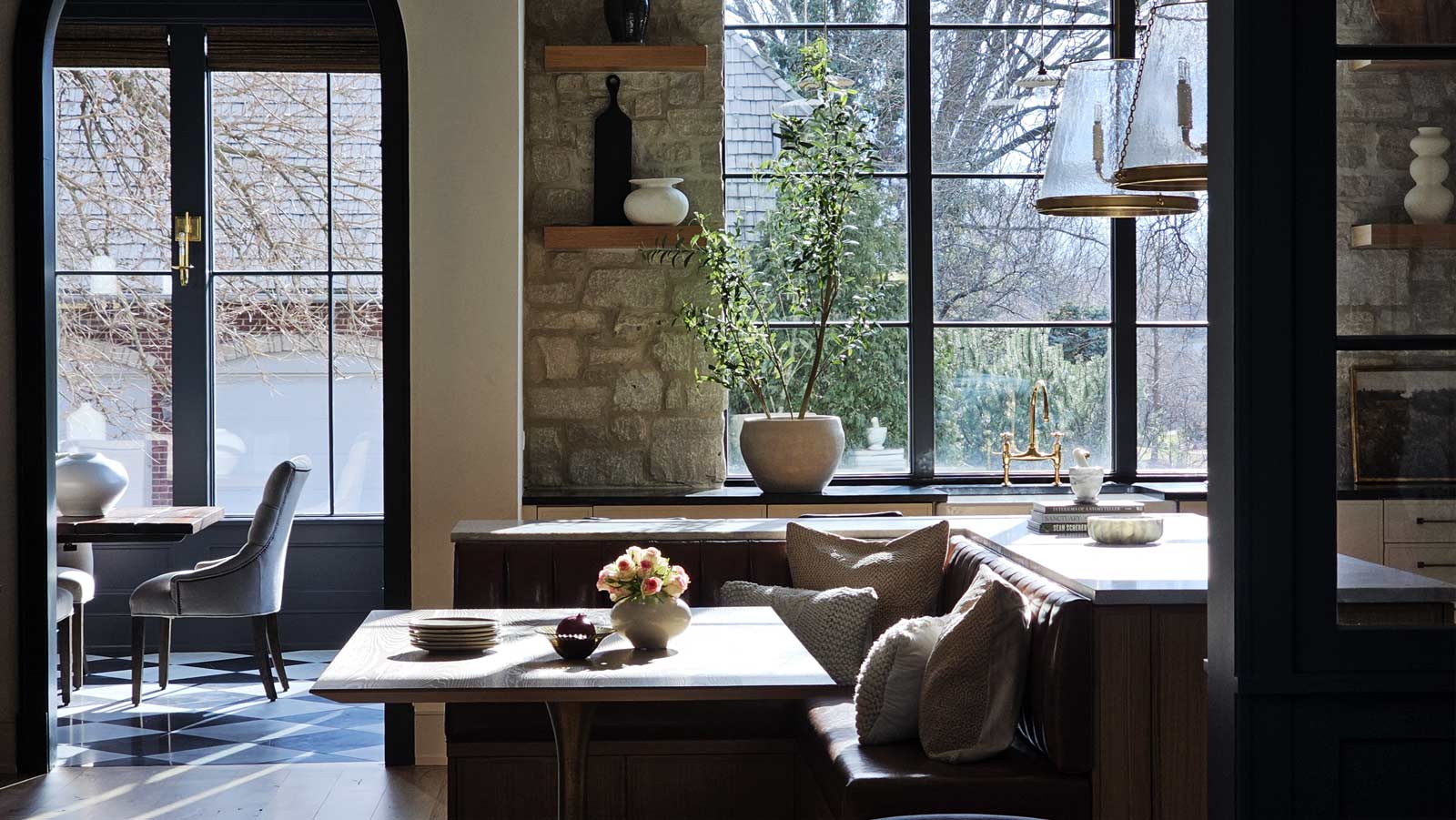 - Layering functional lighting throughout the space without relying on recessed can lighting