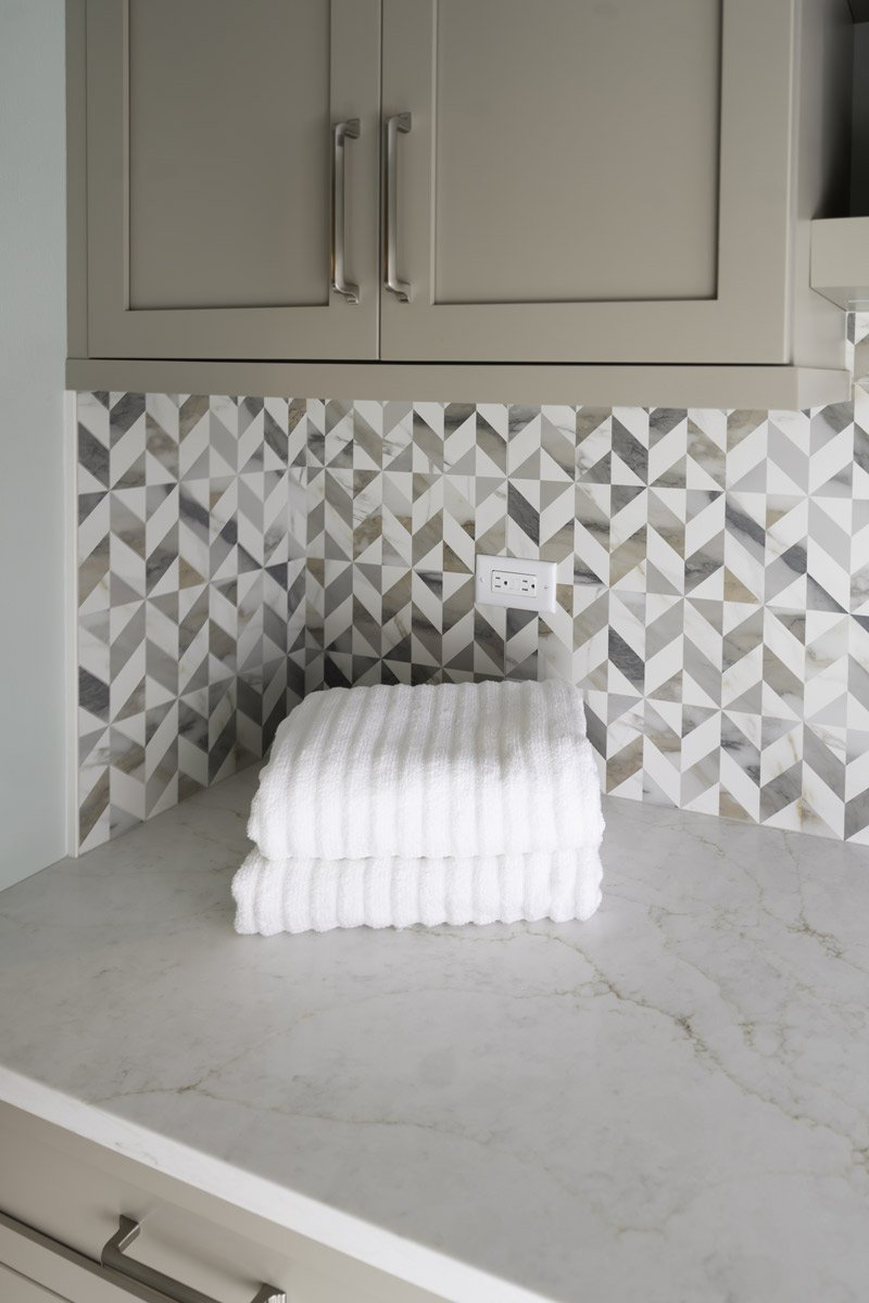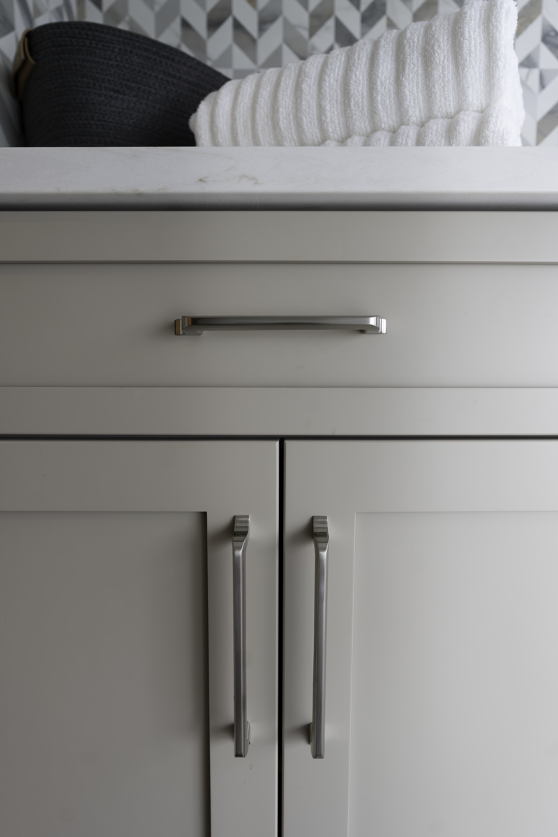 One of the advantages of tackling these rooms as a group was the ability to create cohesion without excess. Shared materials — including the same quartz used across all three spaces — helped tie everything together visually while also unlocking efficiencies.